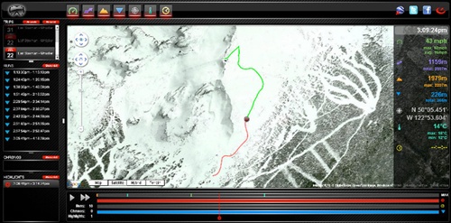 안경 형태로 착용하는 디스플레이어(head mounted display, hmd)의 시스템과 gps 기술을 통합하여 제작된 이 고글은 마이크로 스크린에 실시간으로 자신의 속도, 점프시의 체공 시간, 고도의 증감, 온도 데이터뿐만 아니라 위치기반 시스템을 이용한 스키장의 지도 등을 함께 제공한다는 점이 특징이다.