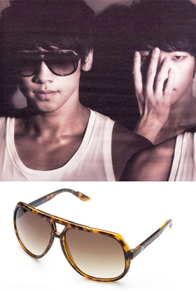 화보에서 비가 착용한 아이웨어는 구찌의 gg1622. 오버사이즈 뿔테에 보잉 스타일인 이 제품은 구찌 캐주얼라인으로 나온 2010년 신상품으로 비의 강렬하면서도 돋보이는 남성미를 빛내주는 아이템이다.템플에 구찌 이니셜과 함께 삼색띠가 들어가 있는 것이 특징인 이 제품은 다소 큰 렌즈 사이즈에도 매우 가벼운 착용감으로 사용자들의 만족도가 매우 높은 제품이기도 하다.