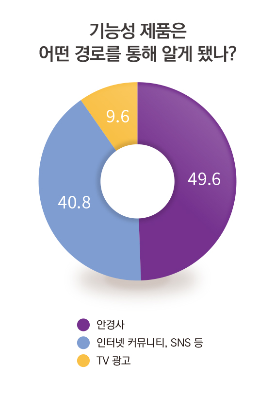 기능성제품을 알게 된 경로에 대해서는 예상 외로 안경사가 가장 높은 비중을 차지했다. 물론 인터넷 커뮤니티나 SNS를 통해 알게 된 고객들도 적지는 않지만 안경사를 통해 기능성렌즈에 대해 알게 된 소비자들이 많다는 것은 고무적인 결과다. 기능성렌즈는 판매하는데 있어 까다롭다. 철저한 검안이 이뤄져야 하며 고객들의 라이프스타일과 직업, 니즈를 잘 파악해야 만족할만한 솔루션을 제시할 수 있다. 그런 의미에서 기능성렌즈는 안경사들의 전문성을 부각시켜주는 가장 좋은 무기다. 소비자들이 기능성렌즈를 안경사와 자연스럽게 연결짓는 다면 신뢰도도 충분히 높아질 수 있다.