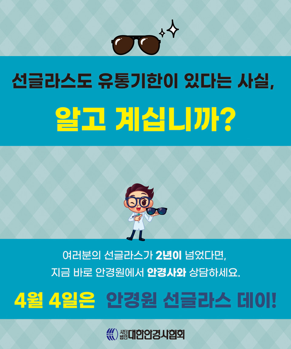 한편 대안협은 지난 2020년 선글라스가 온라인 쇼핑시장의 급격한 성장과 오프라인 채널의 다양화로 인해 안경원에서 설 자리를 잃자 이를 극복하기 위해 매년 4월 4일을 선글라스 데이로 지정, 라디오 광고와 홍보 포스터 배포 등 대국민 홍보를 위해 많은 노력을 해왔다.