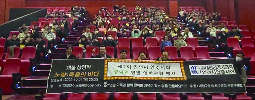 인천시안경사회는 회원 및 가족 140여명과 함께 지난 12월 21일 연수 스퀘어원 CGV에서 노량-죽음의 바다를 영화를 관람했다.
