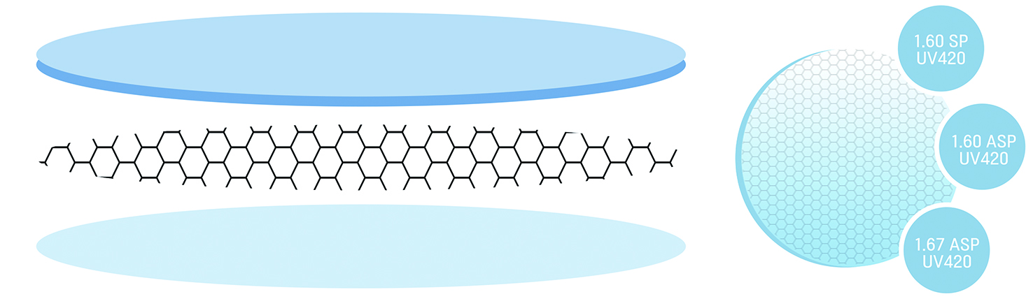 하이브 렌즈는 UV코팅과 초발수 코팅으로 다양한 여벌(1.60 SP UV420, 고난시 1.60 SP UV420, 1.60 ASP UV420, 1.67 ASP UV420, 고난시 1.67 ASP420)을 보유하고 있다. 도수 범위가 다양하고 연구 결과로 안전성이 인증된 만큼 안심하고 사용할 수 있다.