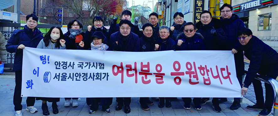 (사)대한안경사협회 서울특별시안경사회(회장 김원철)가 지난 14일 치러진 ‘제37회 안경사 국가시험’ 수험생들을 격려하는 응원 활동을 펼쳐 눈길을 끈다.