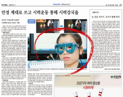 종합일간지 동아일보가 이례적으로 '우리eye 1.0지키기' 주제의 안경특집 섹션을 8페이지 발행해 눈길을 끌었다. 동아일보는 지난달 26일자 섹션지면에서 한국과 일본의 사회환경 비교 등을 통해 한국인의 시력약화를 긴급으로 진단, 가독성을 높였다. 특히 다비치 비전트레이닝센터의 시력회복운동 박스는 국민의 눈건강을 다시한번 되새기게 하는 교육적 내용도 함축돼 있어 의의가 컸다. 또 장만호 소모옵티칼 대표의 '눈 건강 지키기, 국가가 함께 하자'라는 전문가 기고도 게재해 국가적인 차원의 눈 건강 대책을 촉구했다.