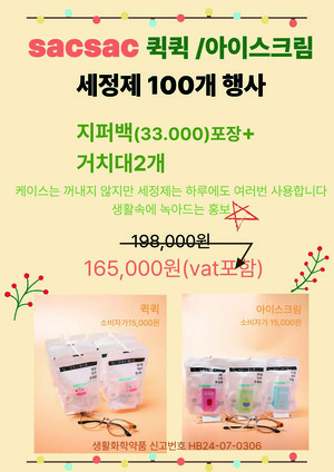 새로운 개념의 안경세정제인 ‘싹싹 안경렌즈 클리너’를 제조, 유통 중인 보이네컴퍼니(대표 이소영)가 본격적인 겨울철을 맞아 파격 할인 이벤트를 진행한다.보이네컴퍼니는 먼저 대표 브랜드 퀵퀵과 아이스크림 제품에 한해 할인 이벤트를 진행 중이다. 정가 19만8000 원 제품을 16만5000원에 균일가로 판매한다. 여기에 지퍼백과 거치대 2개가 포함돼 고객들에게 바로 판매할 수 있도록 했다. 또 겨울철 필수 아이템인 ‘싹싹 김서림 방지 클리너’도 파격적인 패키지 행사를 진행 중에 있어 겨울 시즌을 맞는 안경원들에게 큰 도움이 될 전망이다