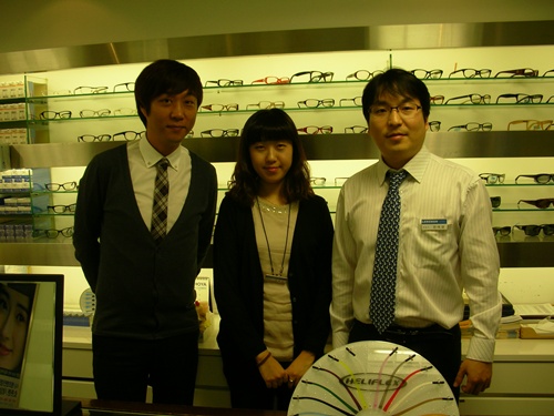 “선생님∼ 고객님 좀 상담해주세요.” 렌즈맨 김포공항점 한태영 원장이 같이 근무하는 안경사에게 업무를 맡기는 모습이다.