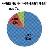 '아이엔샵을 이용하면서 브랜드 홍보에 도움이 되었나'라는 설문에 참여한 42개 업체 중 긍정적으로 답한 업체는 72%로 나타나 브랜드 홍보에 아이엔샵이 많은 역할을 하고 있음을 보여줬다. 아이엔샵이 온라인에서 활발하게 활동하고 입점업체 및 안경원에서 활용도가 높아지고 있음을 알 수 있다. '아이엔샵 메인 배너 등록이 매출에 도움이 되나'라는 질문에서도 설문에 참여한 대부분 업체 34개사(81%)가 그렇다고 답했다. 아이엔샵의 메인 배너는 월별로 선착순 신청이며, 원하는 주에 일주일 동안 노출되고 있다. 현재는 무료로 운영되고 있으며, 메인 배너 등록이 매출로 이어지는 아주 중요한 매개체 역할을 하고 있음을 보여주고 있다.