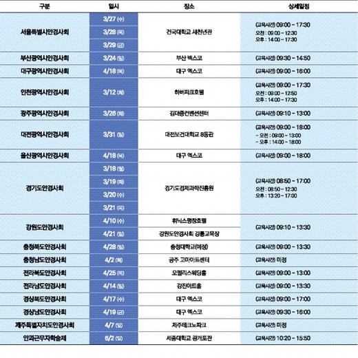 일정 및 장소, 시간은 하단의 표를 참고하면 된다. 기타 자세한 사항은 각 시도 안경사회에 문의.