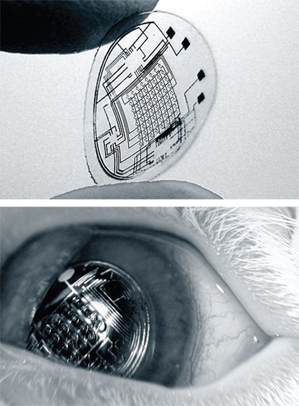 2008년 미국 시애틀의 워싱턴 대학에서는 나노테크를 활용한 콘택트렌즈의 시제품을 개발했다. 전기공학과의 바락 파르비즈 교수에 의해 진행되고 있는 이 스마트 콘택트렌즈 프로젝트는 렌즈에 삽입된 led 창을 통해 가상으로 뜬 정보를 볼 수 있게 된다. 태양광을 에너지원으로 작동되는 이 스마트렌즈는 에너지저장과 정보처리의 영역으로 구분되어있다. 태양광 모듈, 태양광 에너지 저장 모듈, 전자연결, 센서 출력 및 컨트롤 서킷, 전파 및 전력 변환 서킷, led 영상 컨트롤 서킷, 통신 및 전력 수용 안테나 등 특히 사용자의 시각정보를 읽을 수 있도록 생체 센서 모듈이 장착돼 사용자 맞춤형 서비스를 제공할 계획이다.