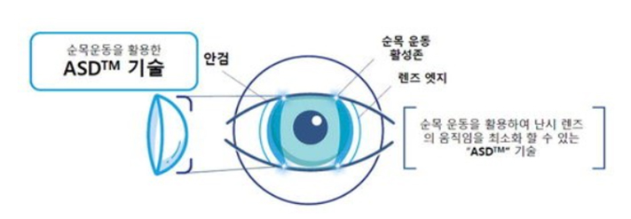 ASD 기술은 4개의 순목운동 활성존을 활용, 깜빡일 때마다 축이 안정되는 기술로 난시용 콘택트렌즈의 시력교정을 최대화했다. 이를 통해 ASD 기술이 중력의 영향을 최소로 받을 수 있도록 했으며 다양한 자세를 취하더라도 축 안정이 유지되면서 더불어 선명한 시야를 유지할 수 있다.