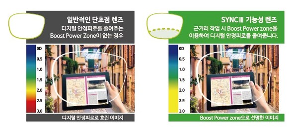 세이코렌즈가 추천하는 디지털기기 사용에 최적화된 기능성렌즈는 '스마트줌(SMARTZOOM)시리즈'다. 세이코렌즈 스마트줌은 단초점렌즈의 프리미엄 버전으로 단초점과 같이 넓은 원거리 시야를 제공하는 동시에 기능영역을 통해 눈피로를 완화해준다. 스마트줌이라는 제품명 또한 스마트폰(SMART)과 조절력 완화를 위한 기능영역(ZOOM)을 의미한다. 일반적인 기능성렌즈는 원용 아이포인트에서부터 도수가 변형대 근거리로 갈수록 플러스 도수가 높아져 원거리의 흐림과 울렁임을 유발하게 된다. 스마트줌은 원용도수가 원용아이포인트 아래 5~6mm까지 유지되기 때문에 단초점처럼 넓은 시야를 확보할 수 있다는 것이 가장 큰 장점이다.