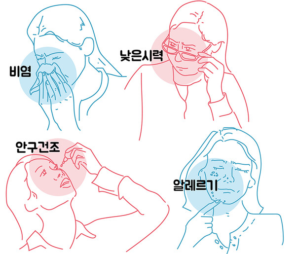 근적외선, 블루라이트, 자외선 등을 차단하는 것이 왜 중요할까. 현대인들의 라이프스타일을 보면 디지털기기와 밀접한 생활을 하고 있다. 그러면서 호소하는 불편함 중 하나가 안구건조다. 흔히 삶의 질을 하락시키는 질병으로 비염, 알레르기, 안구건조, 시력저하 등을 얘기한다. 그만큼 잘 보는 것이 일상생활에서는 매우 중요한 요소다.