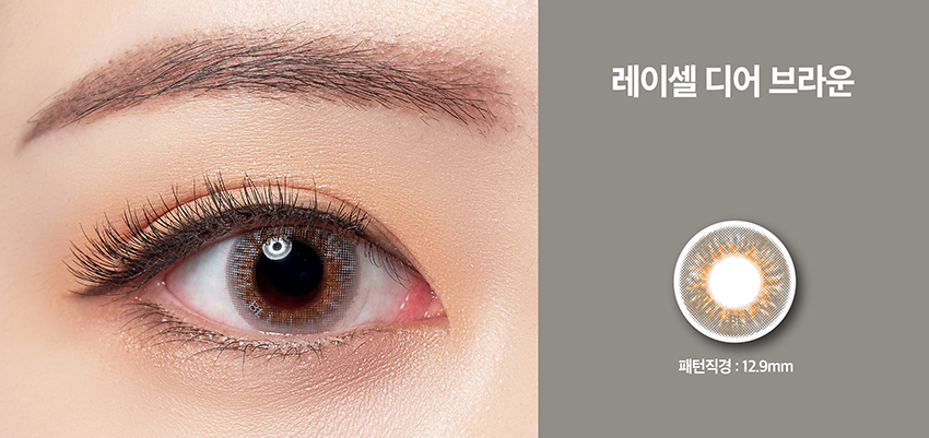 레이셀 '디어 브라운'은 컬러렌즈 초심자를 비롯한 누구나 부담없이 선호하는 브라운 컬러로, 다채롭고 세련된 느낌을 주며, 최근 스타일링 트렌드인 꾸민 듯 안 꾸민 듯한 편안하면서도 스타일리시한 분위기를 표현한다. 오렌지와 그레이, 투톤 컬러가 레이어드 돼 다채롭게 빛나는 눈빛을 완성할 수 있다.