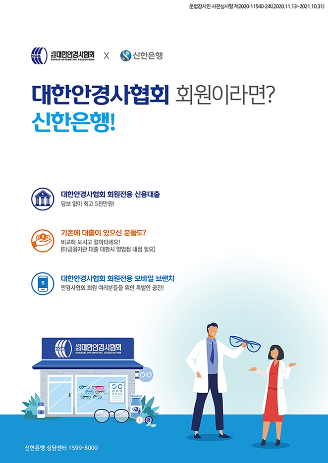 (사)대한안경사협회(협회장 김종석.이하 대안협)가 신한은행과 금융서비스 업무협약을 통해 안경사 전용 대출 상품을 제공하게 됐다고 지난 16일 밝혔다.