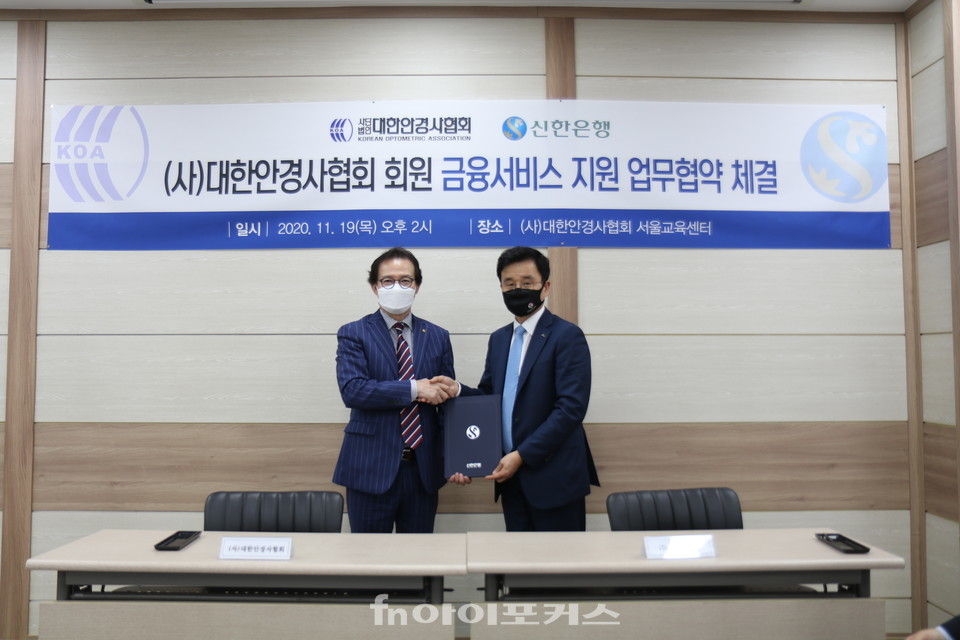 (사)대한안경사협회(협회장 김종석·이하 대안협)가 지난달 19일, 대안협 서울교육센터에서 신한은행(은행장 진옥동)과 안경사 회원 대상으로 저금리 대출이 가능한 '의료인 행복대출' 금융서비스를 제공한다는 내용의 업무협약을 체결했다.