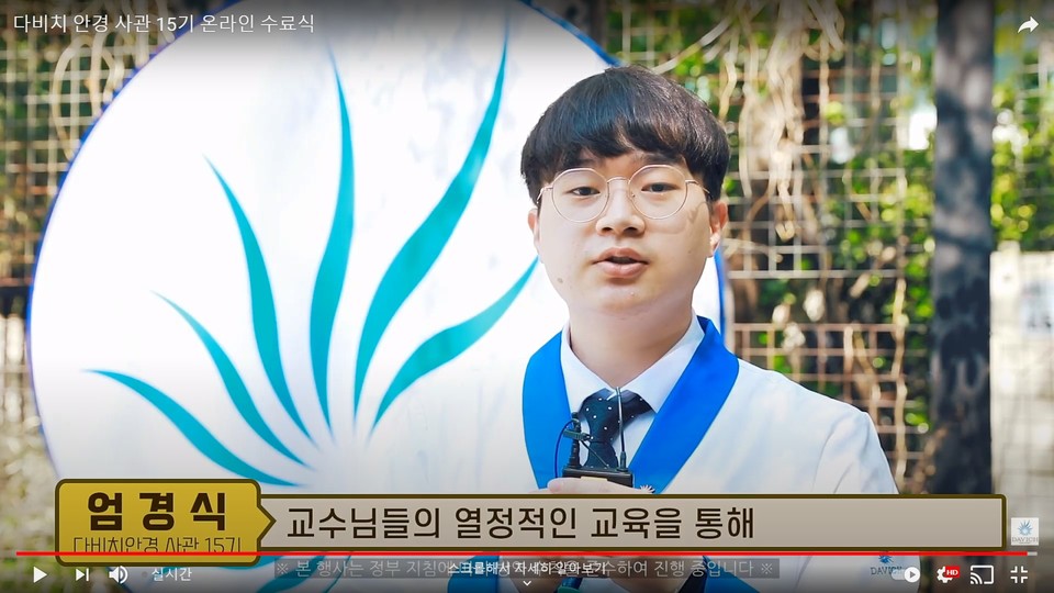 이어 15기 사관생도들의 4개월간 여정을 담은 영상과 생도 및 강사진 인터뷰가 이어졌다. 15기 김은빈 생도는 "전문성있는 안경사 자질을 갖출 수 있도록 해준 교수님들께 감사드린다"며 "다비치 사관생도라는 타이틀로 각자의 자리에서 최선을 다하자"고 소감을 밝혔다.