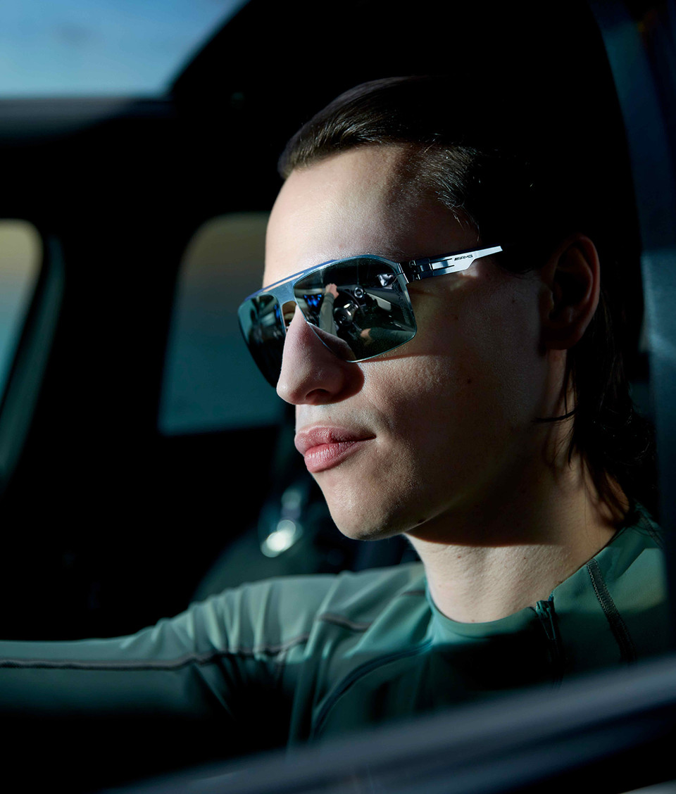 이번 컬렉션의 하이라이트라고 할 수 있는 'MB Shield 02' 모델은 메르세데스-벤츠 AVTR 컨셉카에서 영감을 얻은 프로그레시브 모노 렌즈 쉴드를 적용해 혁신적인 미래형 디자인을 완성했다. 특히 렌즈에 삽입된 패턴은 제품의 혁신성을 느끼게 해준다.