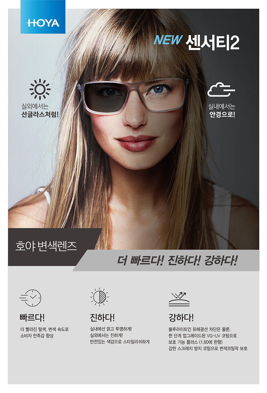 한국호야렌즈(대표 정병헌)가 다가올 여름을 맞아 한층 업그레이드된 변색렌즈인 센서티2 여벌렌즈를 지난 1일 출시했다. 신종 코로나바이러스 감염증(코로나19) 장기화로 국민들의 피로도가 누적되고 있지만 봄을 맞아 국민들의 야외활동은 크게 늘고 있다. 또 잠잠하던 소비 심리까지 회복되며 안경원에서는 부가 가치가 높은 변색렌즈 판매에 열을 올려야 할 상황이다. 이런 분위기에 맞춰 호야의 신제품 센서티2에 대한 안경사들의 관심이 높아지고 있다.