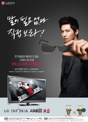 한류스타 원빈을 광고모델로 내세운 lg전자의 lg 인피니아 스마트tv가 인기를 끌고 있다. 이번 lg전자에서 선보인 3d안경은 fpr(필름 패턴 편광 안경)방식을 채택했다. fpr방식은 3d화면을 장시간 시청해도 눈이 편하고 두통이나 메스꺼움을 유발하지 않으며, 배터리가 필요없어 전자파 발생 우려가 없을 뿐 아니라 가볍고 가격이 저렴하다는 점을 차별화 전략으로 내세우고 있다.