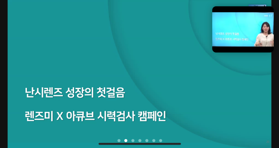 렌즈미는 언택트 시대에 걸맞게 2020년부터 웨비나(Web과 Seminar의 합성어) 시스템을 통해 수많은 안경사들을 대상으로 브랜드의 노하우 교육 및 소통을 진행 중이다. 교육의 주제는 크게 OS, CS, SNS, 전문성 등 4가지 콘텐츠를 바탕으로 매번 색다르게 구성되며, 필요에 따라 각 분야의 외부 전문강사 초빙 혹은 글로벌 업체들과의 합동 강의도 진행되고 있다.