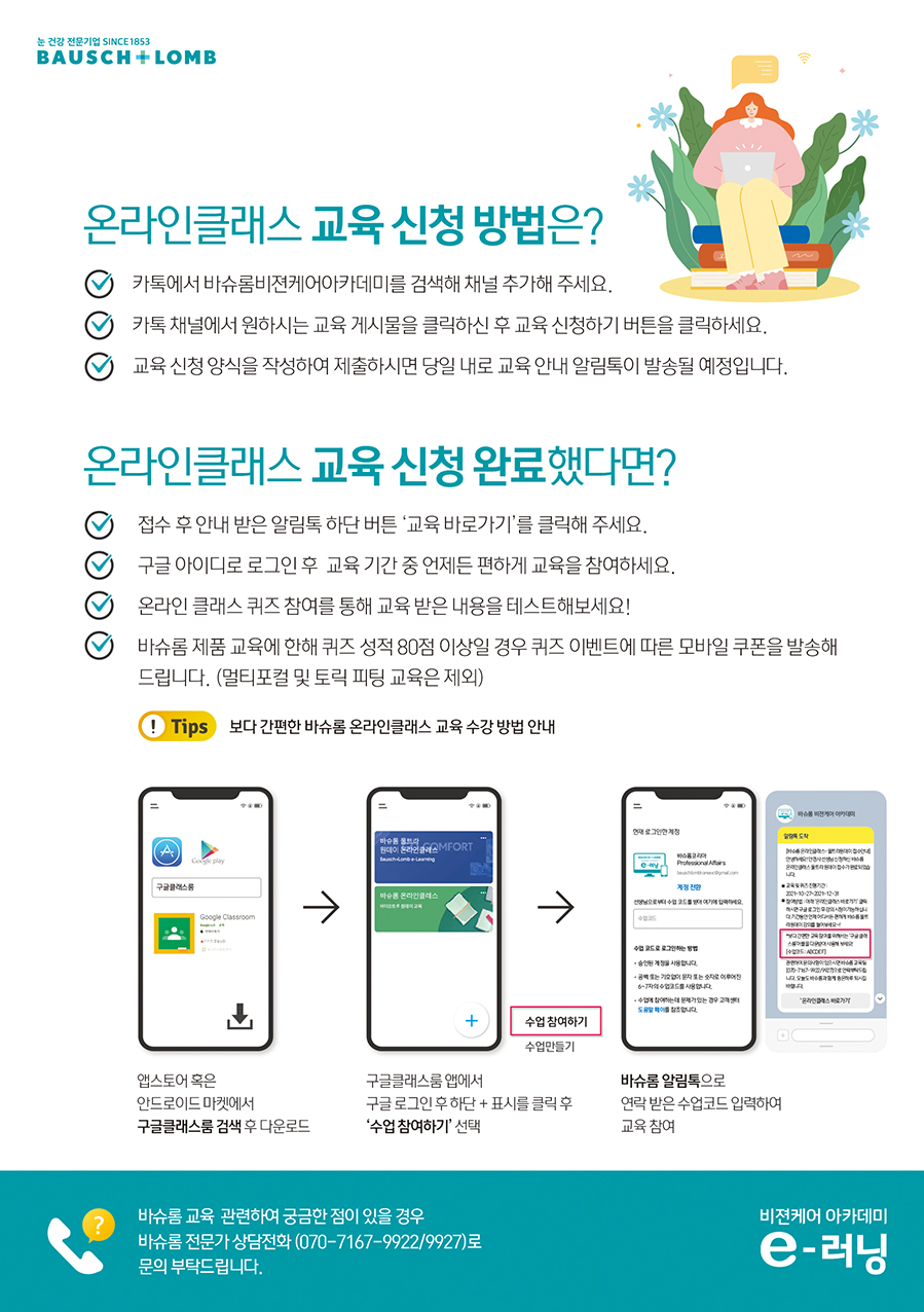 기타 자세한 사항은 바슈롬 교육상담(070-7167-9922/9927) 또는 영업담당자에게 문의하면 된다.