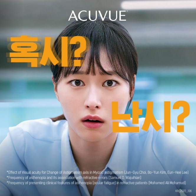 한국존슨앤드존슨 비젼 아큐브(대표 이정현)가 난시 교정 중요성에 대한 인식을 높이기 위해 '혹시 난시' 캠페인을 전개 중이다. 아큐브는 이번 캠페인을 통해 소비자들이 손쉽게 진행할 수 있는 난시 테스트를 제공, 난시가 의심될 경우 안경원에 방문해 전문가의 상담을 받아야 한다고 권하고 있다.