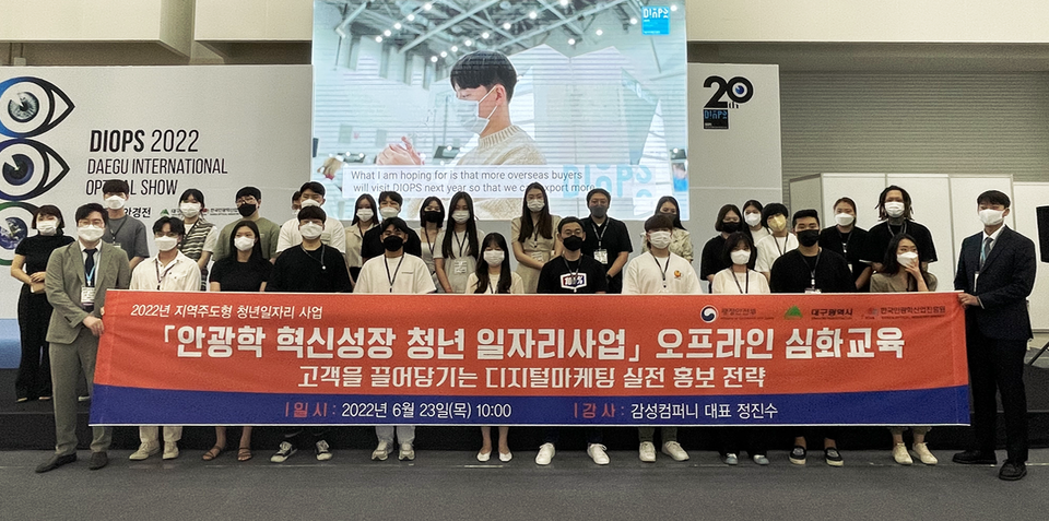 특히 청년 역량강화 마케팅 심화교육 중 오프라인교육은 2022 대구국제안경전(DIOPS‧이하 디옵스)특설무대에서 SNS 마케팅 전문가인 감성컴퍼니 정진수 대표의 '고객을 끌어당기는 디지털 마케팅 실전 홍보 전략'이라는 주제로 온라인 교육 심화과정이 진행됐다. 참여기업과 청년인재들은 안광학산업의 고부가가치적 특성을 위한 디자인, 마케팅, R&D분야의 역량강화에 힘을 쏟고 있으며, 디옵스에서 최신제품과 기술 등 그 결과물을 선보였다.