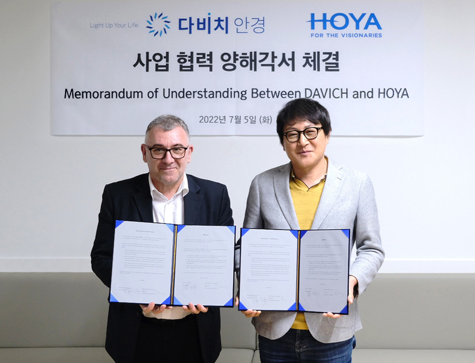협약식은 서울 용산 다비치안경체인 본사에서 이뤄졌으며 다비치안경 김인규 회장, 한국호야렌즈 아시아 태평양 총괄 대표 서지 진, 한국호야 정병헌 대표, 박욱정 부사장 등 핵심 관계자가 참석했다.