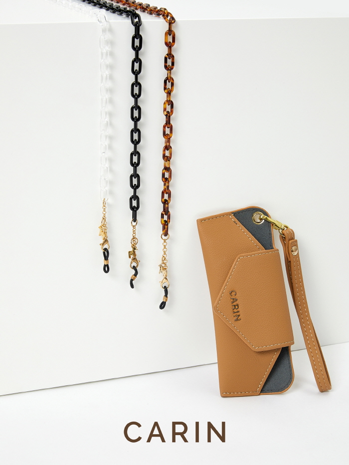 카린(CARIN)이 여름 휴가철을 맞아 아이웨어를 더욱 개성있게 연출해줄 수 있는 실용적인 아이템을 선보였다. 선글라스 케이스를 더욱 편리하게 활용할 수 있도록 만들어진 전용 케이스 선스냅(SUN SNAP)은 스트랩이 달려있어 가방이나 손목에 걸어 휴대하기가 간편하다. 듀얼스트랩(DUAL STRAP)은 의상에 포인트를 주고 싶을때 유용한 아이템으로 선글라스를 벗고 쓸 때 한층 수월하다.