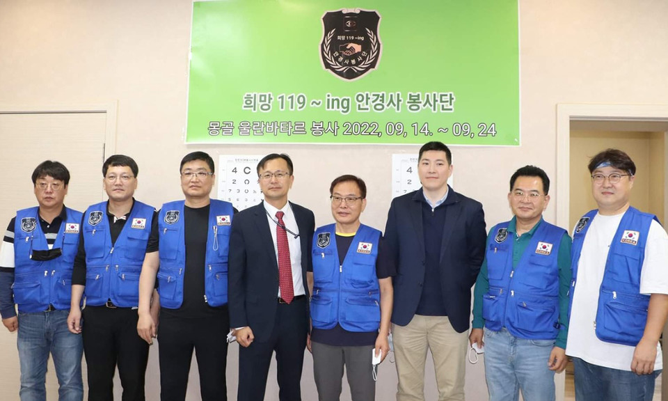안경업계 대표 봉사단체로 꼽히는 '희망119 ~ing 안경사 봉사단'(단장 송현철‧이하 희망119 봉사단)의 해외 나눔 활동이 화제다. 희망119 봉사단은 지난달 14일부터 24일까지 11일간 몽골 울란바토르서 소외계층 2000여명을 대상으로 시력검사 및 맞춤안경 제작 등의 나눔 활동을 펼쳤다.