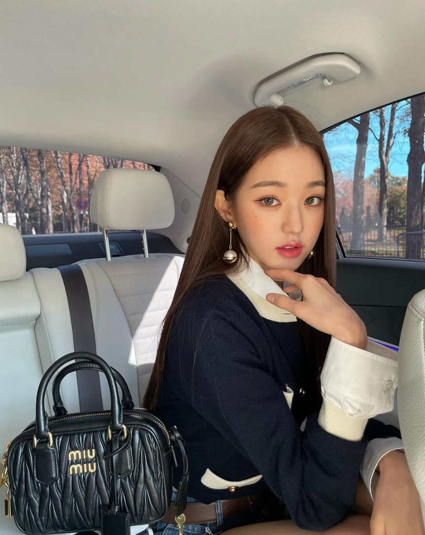 사슴처럼 동그랗고 커다란 눈매가 돋보이도록 속눈썹은 한 올 한 올 끌어올리고, 눈꼬리 뒤로 아이라인을 길게 빼 화려한 눈매를 완성했다. 그레이 컬러의 콘택트 렌즈로 고혹적인 눈빛은 덤! 노출 하나 없이 단정하게 잠근 카디건 패션이 도도하고 귀티나는 장원영의 비주얼을 더욱 돋보이게 해준다.