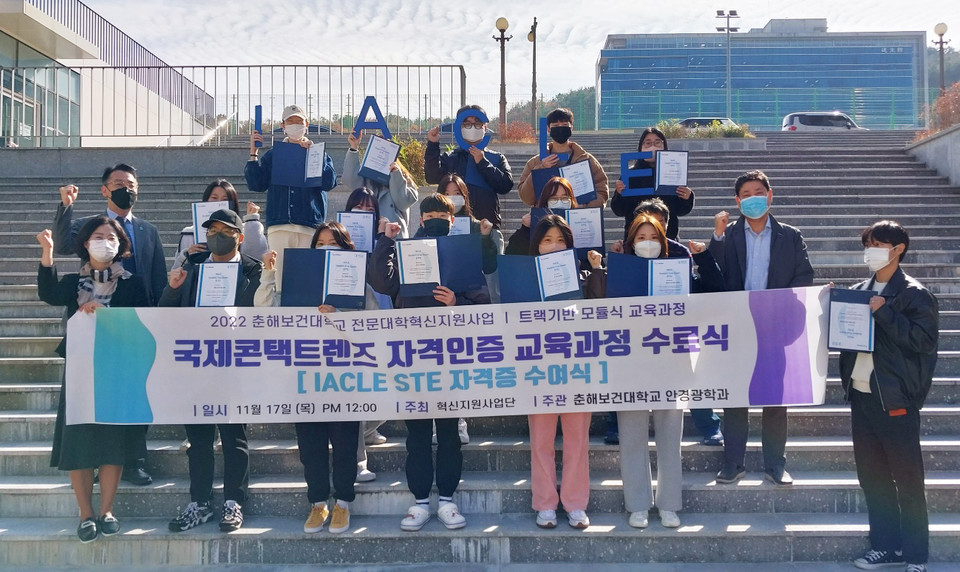 춘해보건대학교 안경광학과(학과장 김봉환)가 지난 8일 국제 콘택트렌즈 교육자협의회(IACLE)에서 주관한 자격인증시험(STE)에 응시자 16명 전원이 합격하는 쾌거를 이뤘다고 밝혔다.