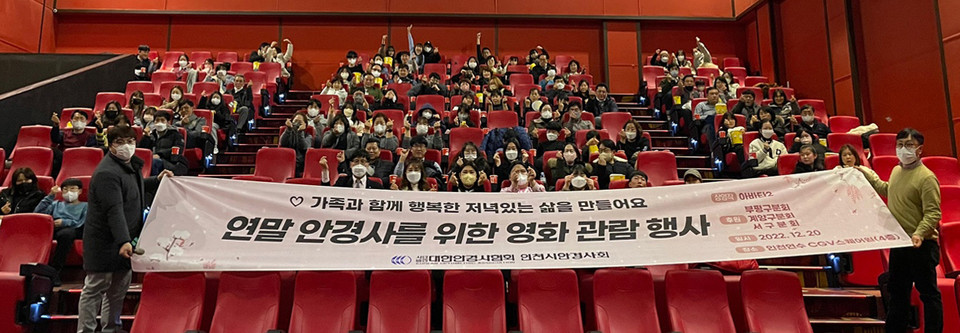 대한안경사협회 인천시안경사회(회장 박종달)가 '가족과 함께 행복한 저녁있는 삶을 만들어요' 이벤트를 성공적으로 진행했다. 인천시안경사회 회원 및 가족 150여명은 지난달 20일 인천 연수스퀘어원 CGV에서 아바타2 영화를 단체관람했다.