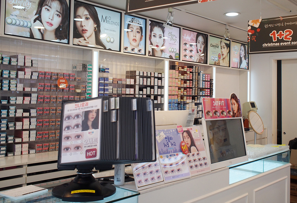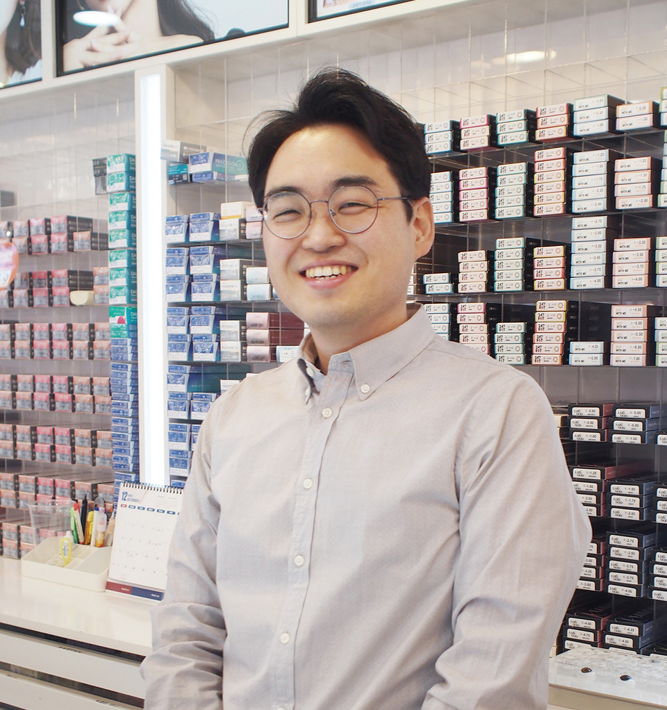 - 상권 특색때문이기도 한데요. 외국인들이 많이 방문하는데 렌즈와 안경을 같이 구매하길 희망하다보니 안경렌즈를 직접 조제 가공하게 됐습니다. 한 두명 고객에게 맞춰주다보니 외국인 고객들 사이에서 입소문이 퍼져서 안경테도 조금씩 더 들여놓게 됐는데 이제 한 코너처럼 꾸며지게 됐네요. 하하. 아무래도 안경은 회전율이 느리니까 렌즈를 함께 구매하면서 순환을 시키고 있습니다.