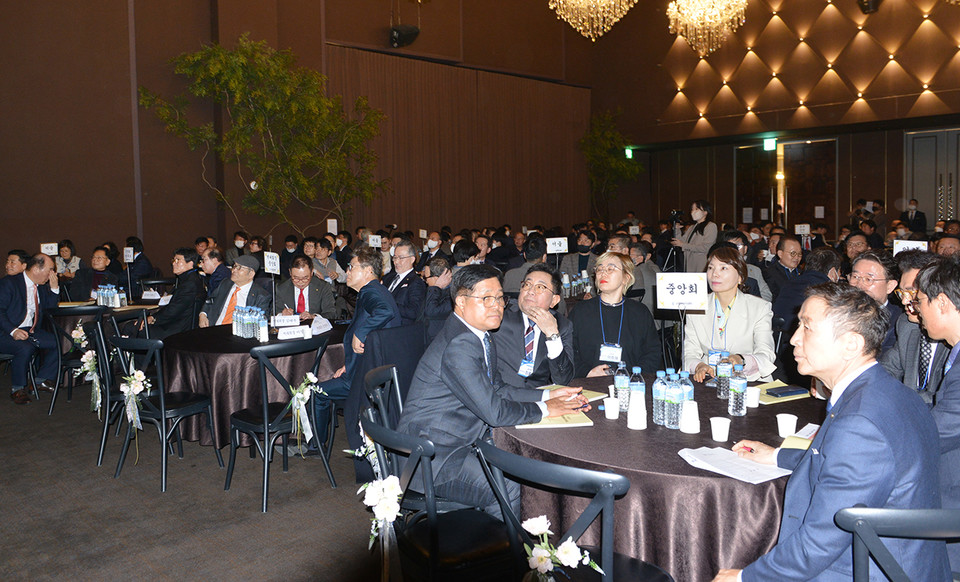 이번 제50차 정기대의원총회는 그동안 코로나19로 인해 화상 비대면 총회로 진행했던 부분을 전면 오프라인 대면 총회로 전환해 열렸다. 이날 총회에는 김종석 협회장을 비롯해 김태옥, 이정배, 김정학 역대회장, 황윤걸 서울시안경사회 회장, 최병갑 경기도안경사회 회장, 박종달 인천시안경사회 회장, 중앙회 민훈홍 수석부회장, 황선학 재무부회장, 최홍갑 행정부회장 등 시도안경사회 회장단 및 중앙회 임원들을 포함해 전국 대의원들이 자리했다.