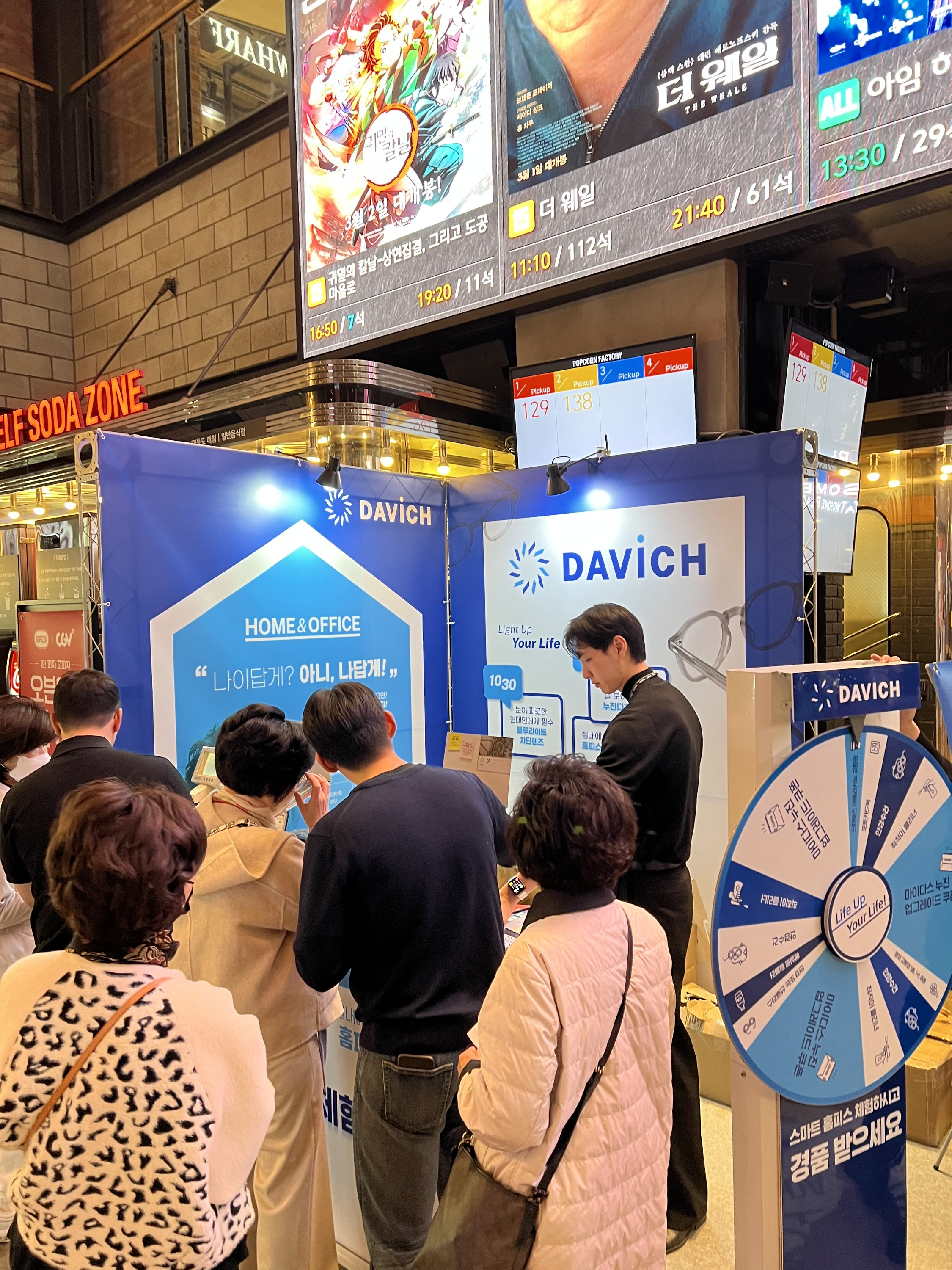 대한민국 대표 시력교정 브랜드 다비치안경이 지난 4일 영등포, 왕십리 CGV에서 쓰고 다니는 돋보기 ‘홈피스’ 체험 행사를 진행했다고 최근 밝혔다.