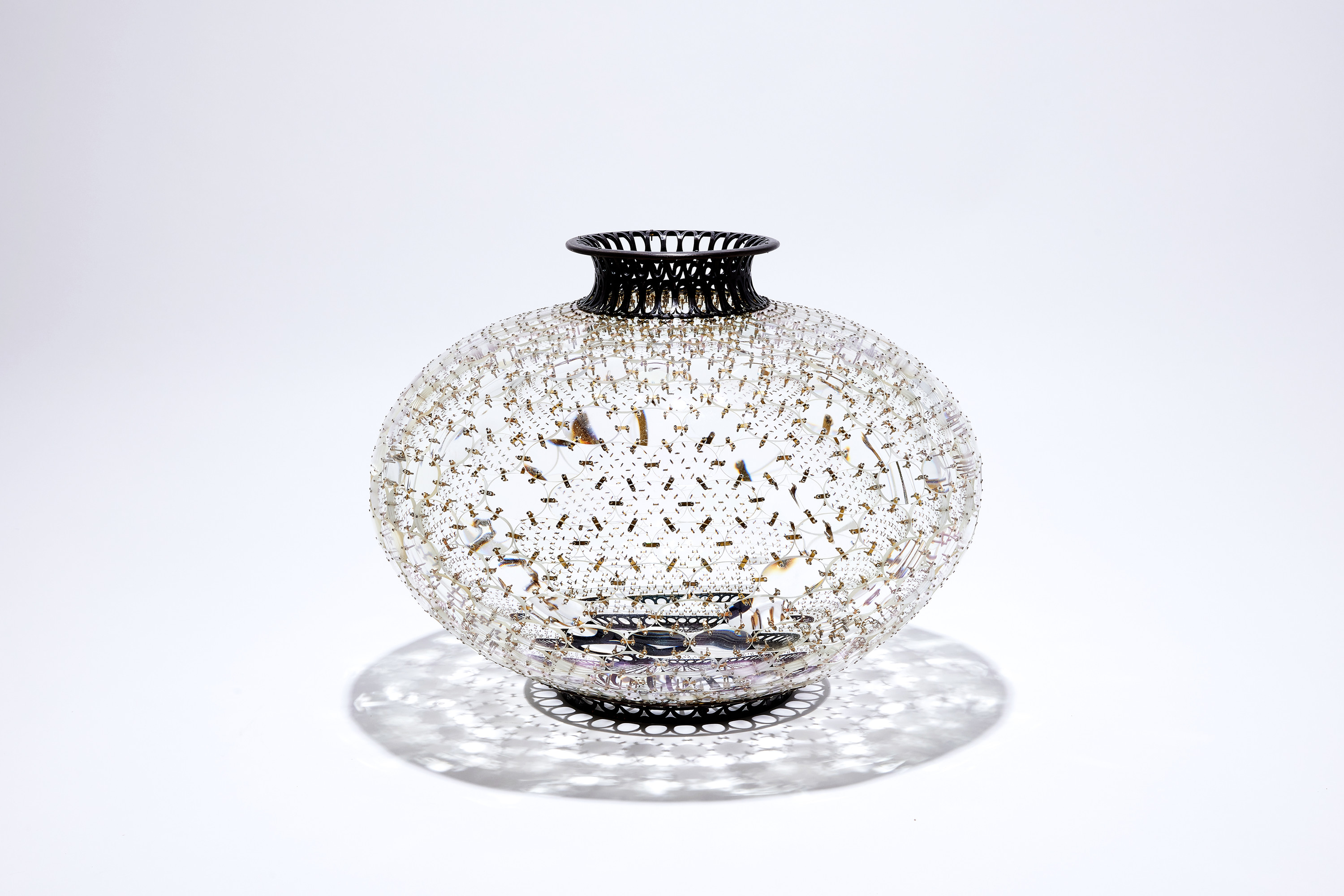 수년 전부터 안경렌즈를 깎아 전시 활동을 펼친 이선미 작가는 올해는 ‘국보급 도자기’를 테마로 한 작품전을 열었다. 안경렌즈를 하나하나 볼트와 너트로 이어 도자기를 표현했다. 작품 자체의 도자기 선도 아름답지만, 안경렌즈가 빛을 만나 입체적인 빛과 모양을 보여주고 있다.