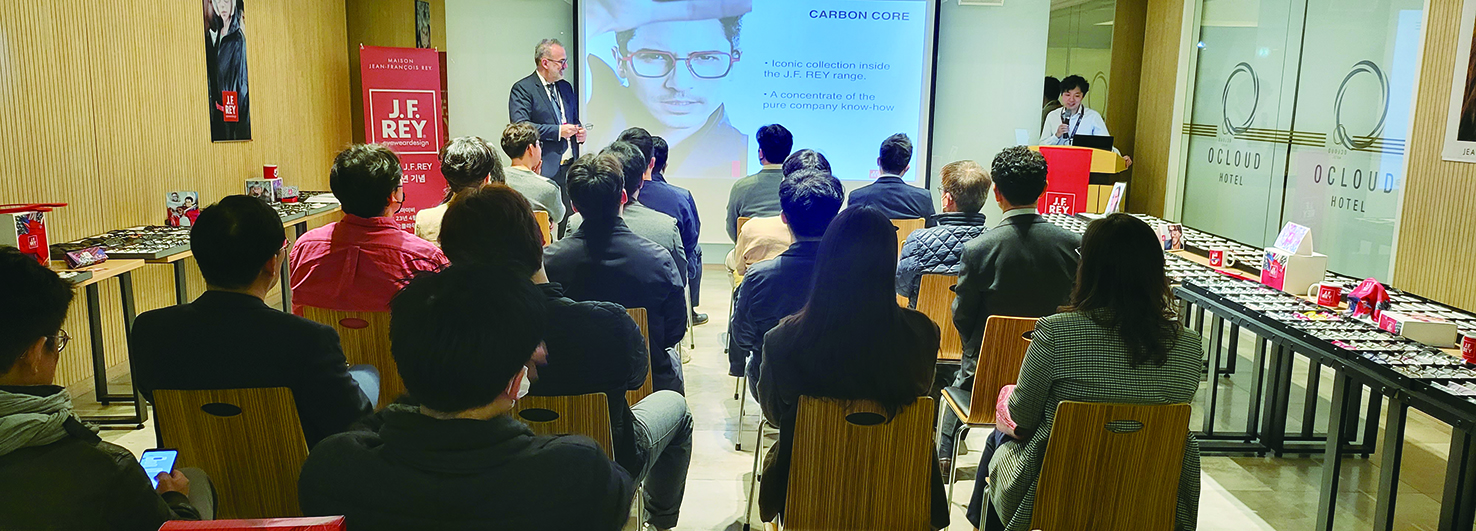 이번 기념행사는 제이에프레이 론칭 5주년을 기념해 프랑스 해외 세일즈&마케팅 디렉터 피에르(Pierre)가 내한해 제이에프레이 제품 설명회를 개최함과 동시에 특별 프로모션도 함께 진행돼 눈길을 끌었다. 특히 행사 시간 전부터 많은 안경사들이 방문해 제이에프레이 제품을 둘러보며 프랑스 정통 하우스 아이웨어의 진면목을 확인할 수 있었다며 만족해 하는 모습이었다.