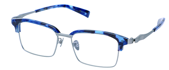 두 번째 모델은 녹스(KNOX)다. 블로우 라인(browline) 스타일의 티타늄 하금테 안경다. 상부의 아세테이트는 이탈리아 Mazzucchelli(마츠켈리) 사용하여 화려한 컬러감과 질감을 느낄 수 있다. 티타늄 템플라 인은 편안하게 얼굴을 감싸주며, 프론트 부분의 티탄 소재 하금은 지성적인 남성 스타일을 표현하고 있다