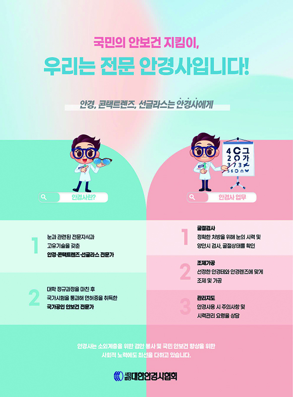 현재 국민 안경착용률은 60%에 육박했으며, 라이프 스타일의 다양화와 노안인구의 증가, 대기환경 변화 등의 요인으로 시생활 패러다임 자체가 바뀌어가고 있다. 단순 시력보정을 넘어 아이케어 전문가로서의 역할이 요구되는 만큼 이에 맞춰 다방면의 전문성 확보를 해나갈 때 안경사가 전문가 그룹으로서 사회적 위상을 확립할 수 있다. 1인 멀티 안경 착용 인구의 증가와 기능성 렌즈 수요 급증, 노안 연령대의 하향을 비롯해 어린이 근시인구의 증가는 하나의 사회 현상이 되었으며 이에 따른 차별적인 검안 및 지속적인 아이케어에 대한 소비자 요구는 늘어가고 있다.
