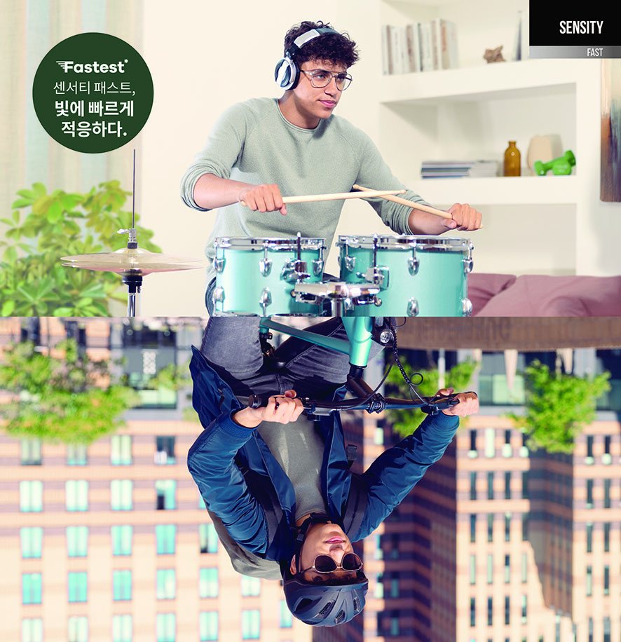 이번에 출시되는 센서티 패스트는 실내외 이동이 많은 활동적인 소비자들을 위해 기존의 제품보다 더 빠른 탈색 속도를 제공, 실내로 이동할 때 빠르게 반투명해진다. 뿐만 아니라 자외선과 블루라이트 차단 기능까지 갖춰 착용자들의 눈을 강한 햇빛과 디지털 기기 화면으로부터 보호한다.