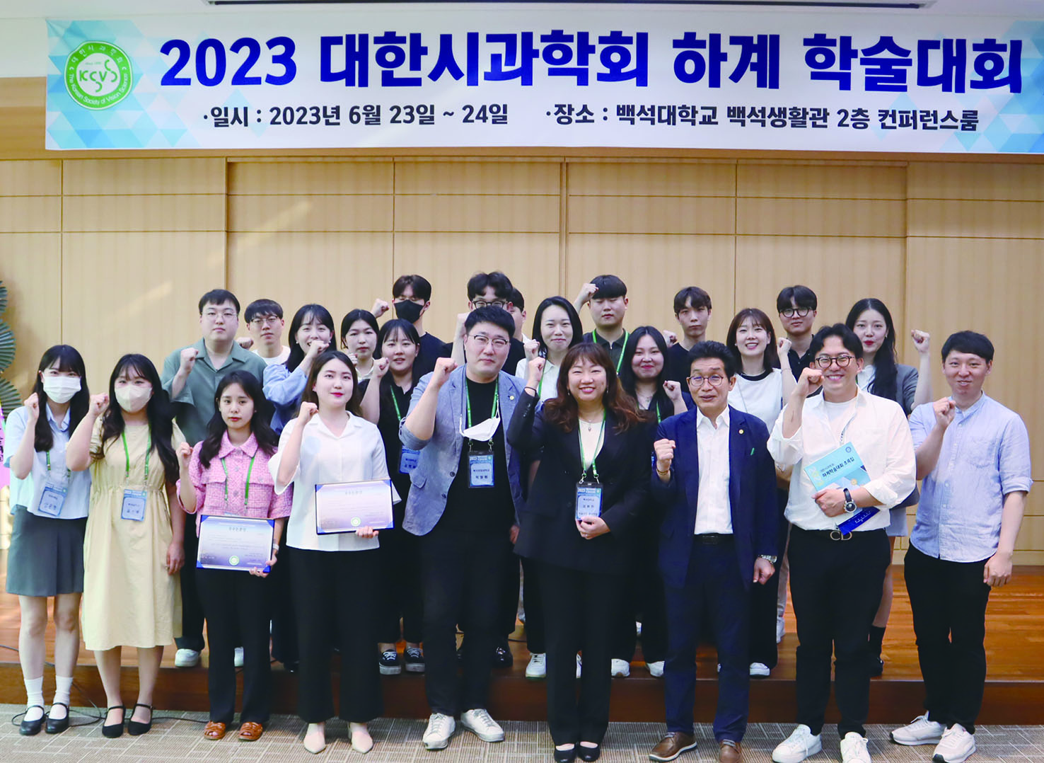 백석대학교 생활관 컨퍼런스룸에서 지난달 23일 2023년 대한시과학회 하계학술대회가 개최됐다. 백석대학교 안경광학과(왼쪽 사진) 석사과정 경다슬(27)씨와 김민하(24)씨 각각 ‘비접촉식 경면현미경을 이용한 20대 젊은 성인의 각막내피세포 분석’과 ‘녹내장 예방을 위한 지식 및 생활습관 분석: 일부 성인을 중심으로’라는 연구로 구연발표 우수상을 받았다.