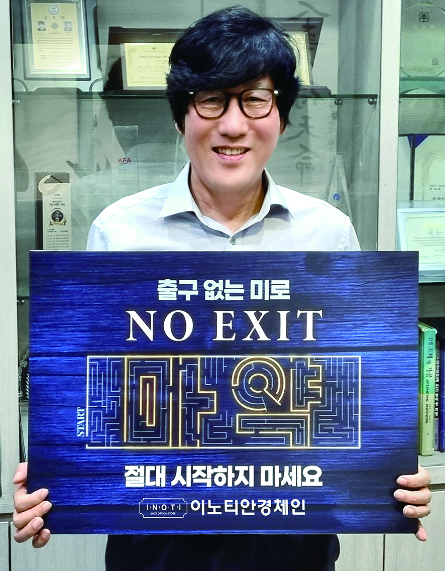 이노티안경체인 채경영 대표가 최근 마약 근절 ‘노 엑시트(NO EXIT)’ 캠페인에 동참했다고 밝혔다.