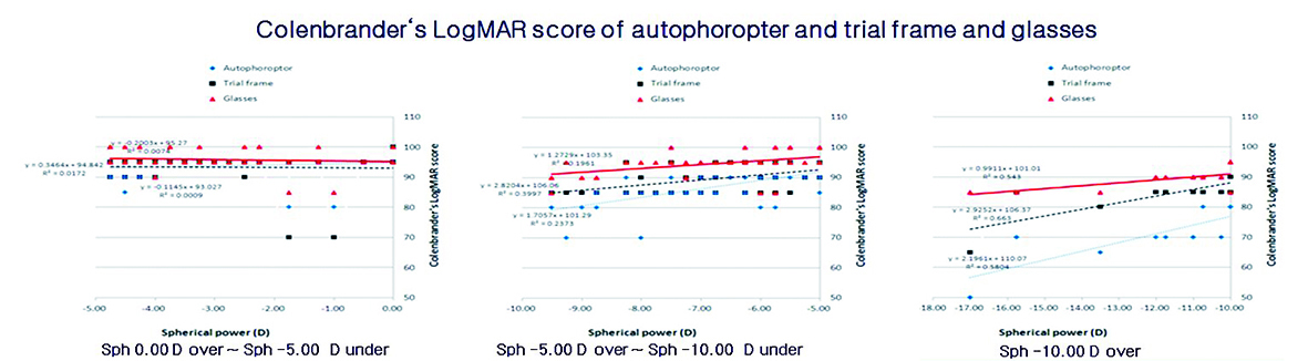 그러면 어떤 노력을 우리가 할 수 있을 것인가. 첫째, 포롭터보단 시험렌즈를 통한 최종 검사를 권장하며 시험렌즈 보다는 기존 사용중인 안경에 도수클립을 장착하여 시험착용하는 것이 적절하다.