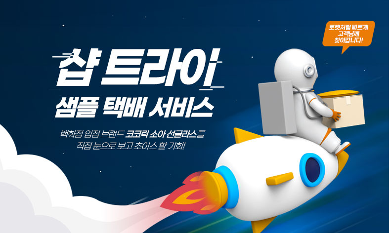샵트라이(SHOP TRY)제도는 안경원에서 샘플을 신청하면 코코릭(COCORIC) 어린이 명품선글라스 전체 모델을 택배로 받아 살펴본 후, 주문은 온라인 쇼핑몰에서 하는 방식이다. 업체측은 이 제도를 도입하게된 배경으로 영업사원 관련 인건비를 절감하고 그 이익을 구매자인 안경원에 좀 더 제공하고자 도입했다고 설명했다.