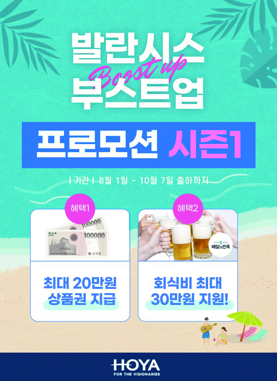 한국호야렌즈(대표 정병헌)가 이달 1일부터 9월30일까지 전국 안경사 대상 ‘발란시스 시리즈 Boost Up’ 프로모션을 진행하고 있다고 최근 밝혔다.