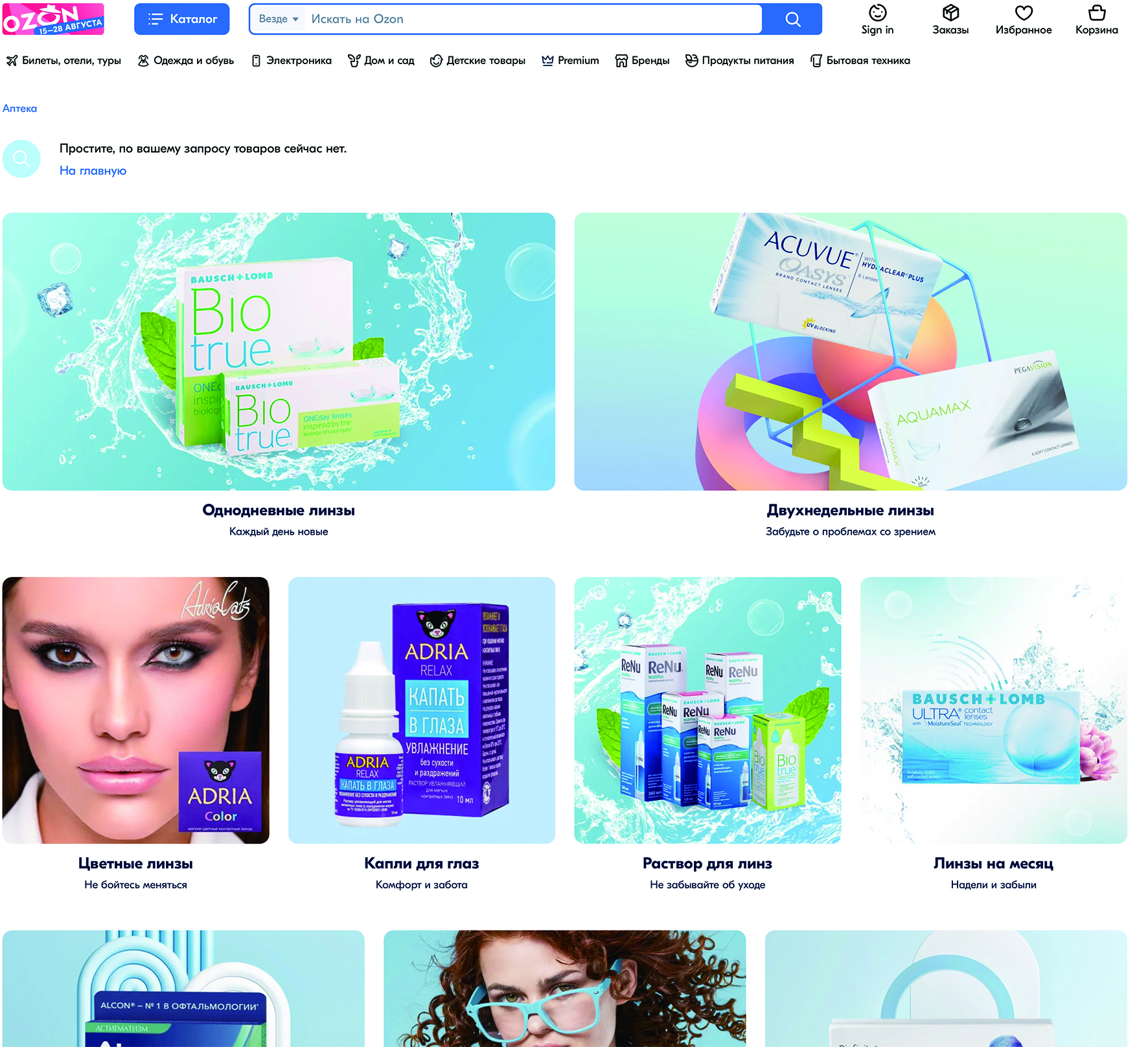 2023년 초 러시아 최대 온라인 플랫폼 중 하나인 Ozon(이미지 참고)이 실시한 설문조사에 따르면, 한국 제품인 Illusion이 1위를 차지했으며 합리적 가격, 고품질 및 긴 교체 주기(3개월)가 주요 구매 사유인 것으로 파악됐다. 가장 높은 점유율을 차지하고 있는 Johnson & Johnson사의 ACUVUE는 2위를 차지했고 또 다른 한국 제품 아드리아는 4위를 차지했다.