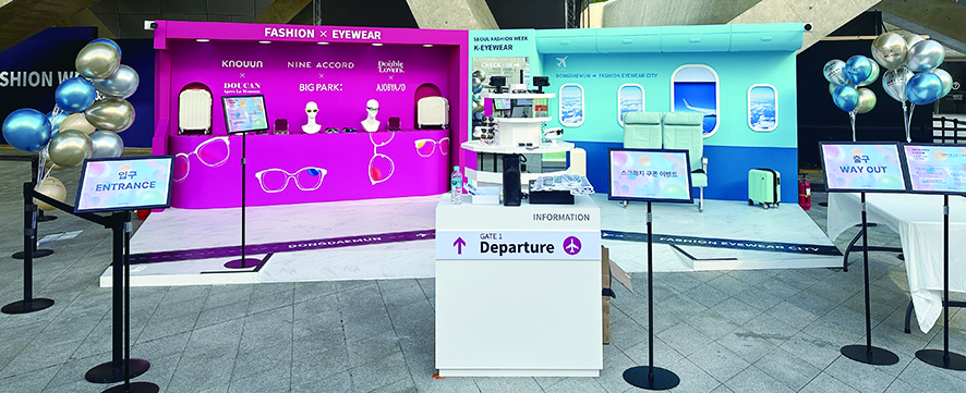 동대문 디자인 플라자 어울림 마당 팝업 부스는 참관객이 직접 제품을 체험할 수 있는 K-아이웨어 쇼케이스로, 다양한 시민참여형 이벤트와 경품을 제공했다. 브랜드 가치를 확산시킬 수 있는 온・오프라인 통합 공간 및 공항을 테마로 한 체험형 프로모션 공간으로 구성됐다.