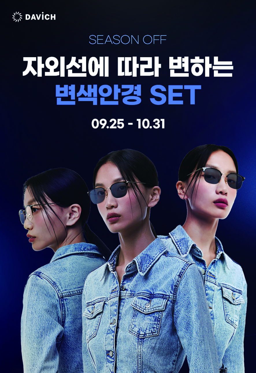 다비치안경이 이달 31일까지 한 달간 변색 안경 세트를 최대 3만원까지 할인하는 ‘변색 안경 세트 프로모션’을 진행한다고 최근 밝혔다.