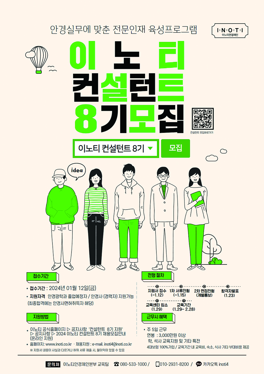 컨설턴트에 대해 보다 자세한 내용은 이노티체인본부(Tel 080-533-1000, SMS 010-2931-8200) 및 채용담당자 카카오톡(inoti4)으로 문의하면 된다.